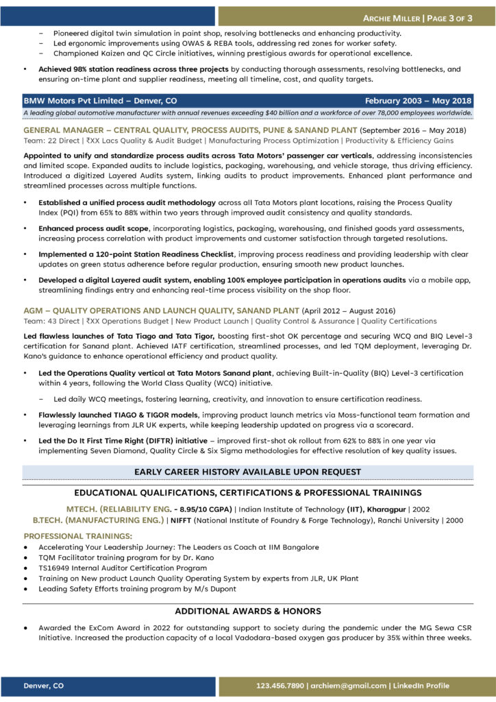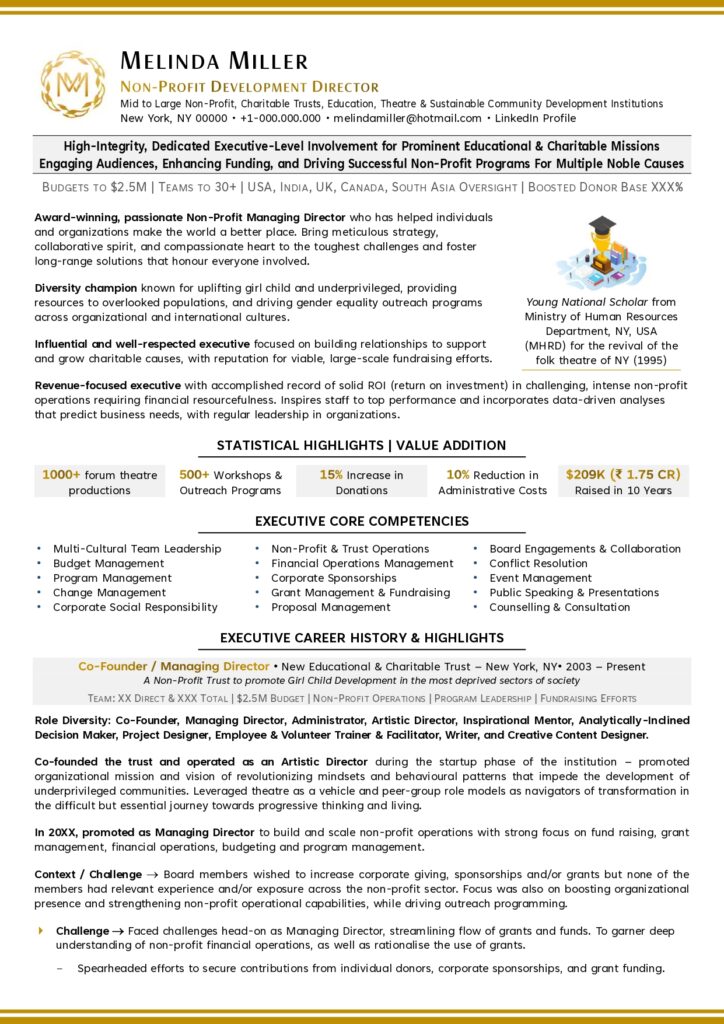 - He also holds a Certified Professional Resume Writer (CPRW) certification, demonstrating his expertise in crafting director level resumes.