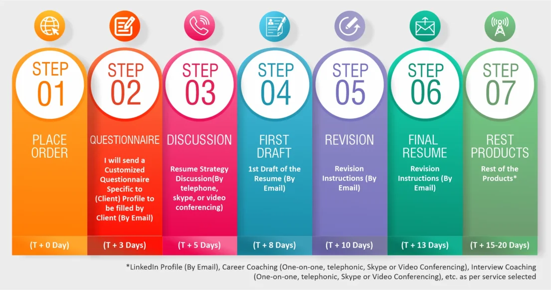 Step 1: Online Order Placement (T + 0 Day): The process begins with you placing an order online for our resume service. This marks the start of our collaboration.